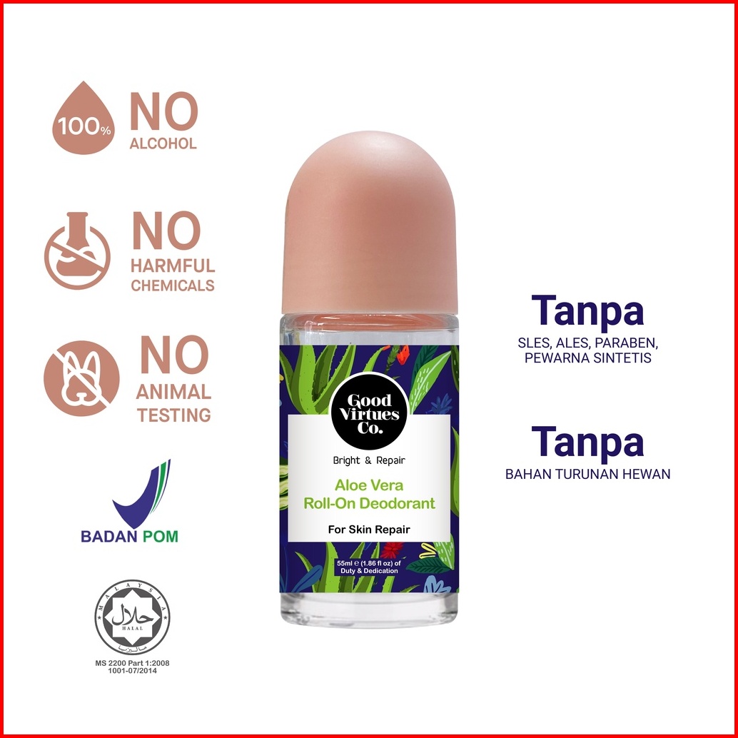 Good Virtues Co. Aloe Vera Roll On Deodorant 55ml Pencerah Ketiak Dan Menghaluskan Kulit Ketiak