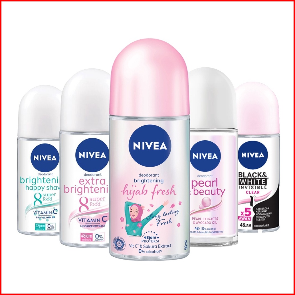 Nivea Women Deodorant Roll On 50 Ml - Black White Extra Brightening Pearl Beauty Hijab Fresh Dry Comfort Brightening Hap