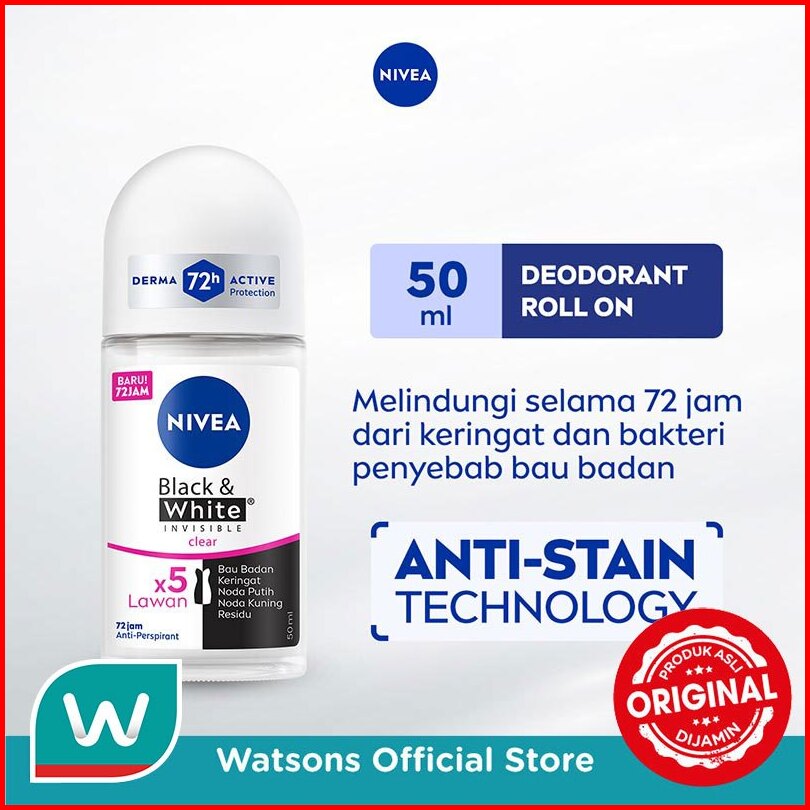 Nivea Deodorant Roll On Black White Invisible Clear 50ml