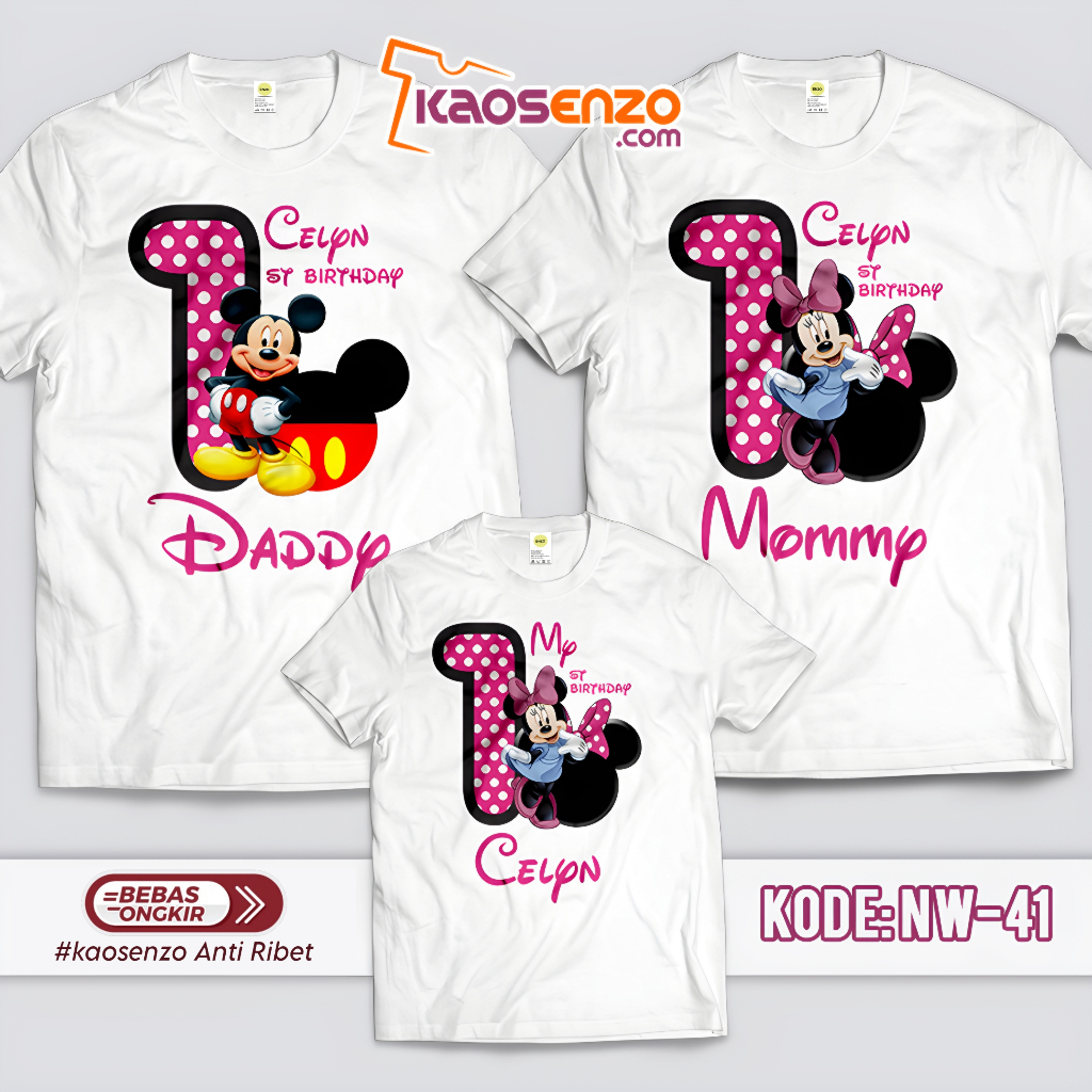 ENZO Kaos Custom Ulang Tahun Ultah Keluarga Anak & Couple | Baju Kapel Family Birthday Premium Sablon Custom Nama & Kata-Kata - Mickey Minnie NW 41