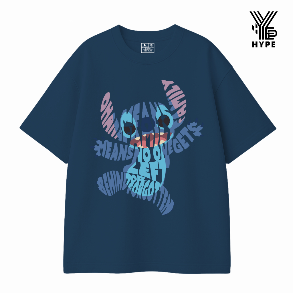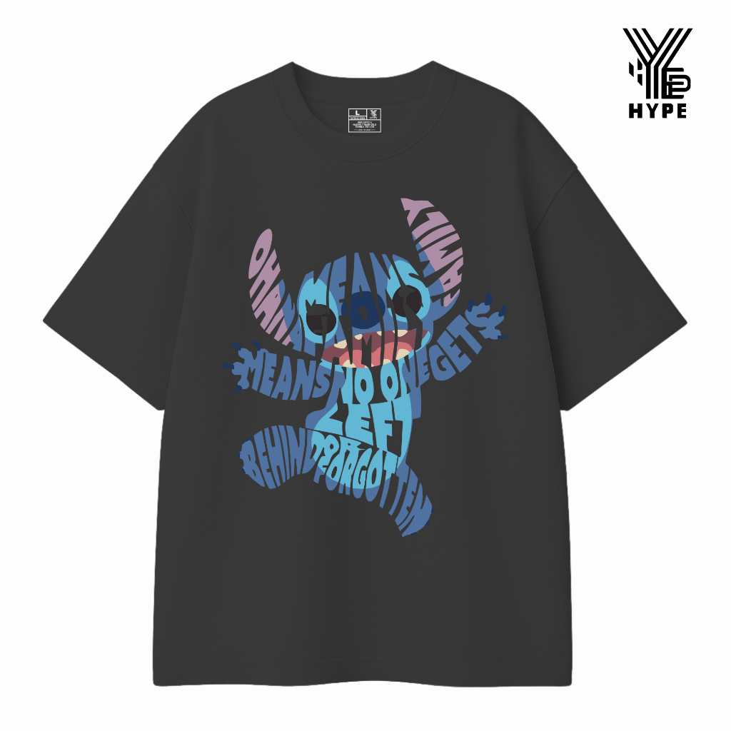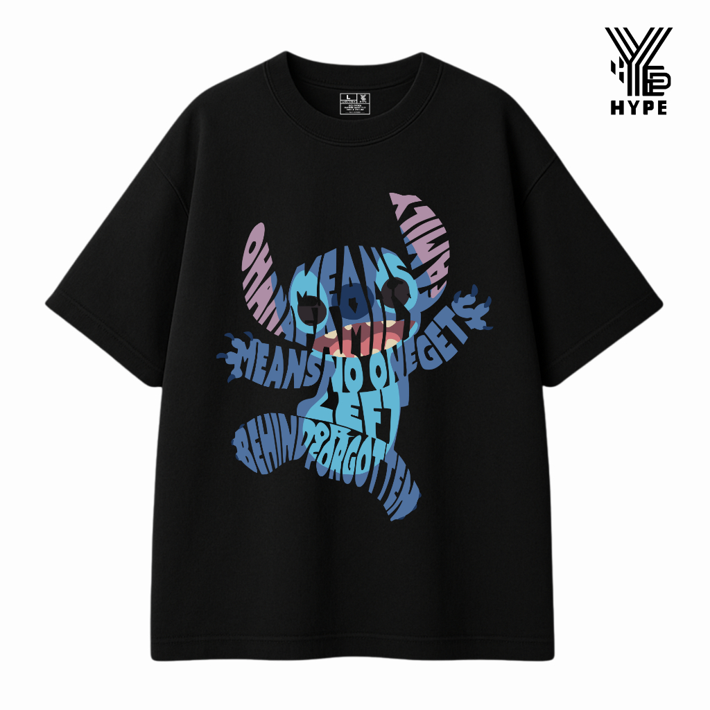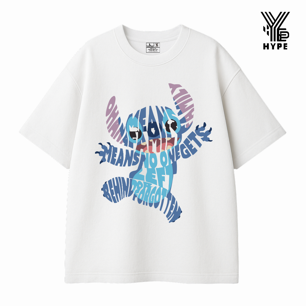 HYPE Kaos Oversize Heavyweight Typography Stitch Ohana Family - Baju Oversized Unisex