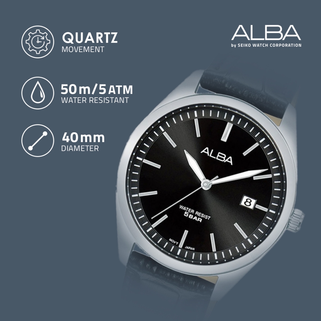 Alba Prestige Jam Tangan Pria AS9S27 / AS9S27X1 Quartz Black Dial Genuine Leather Strap Watch