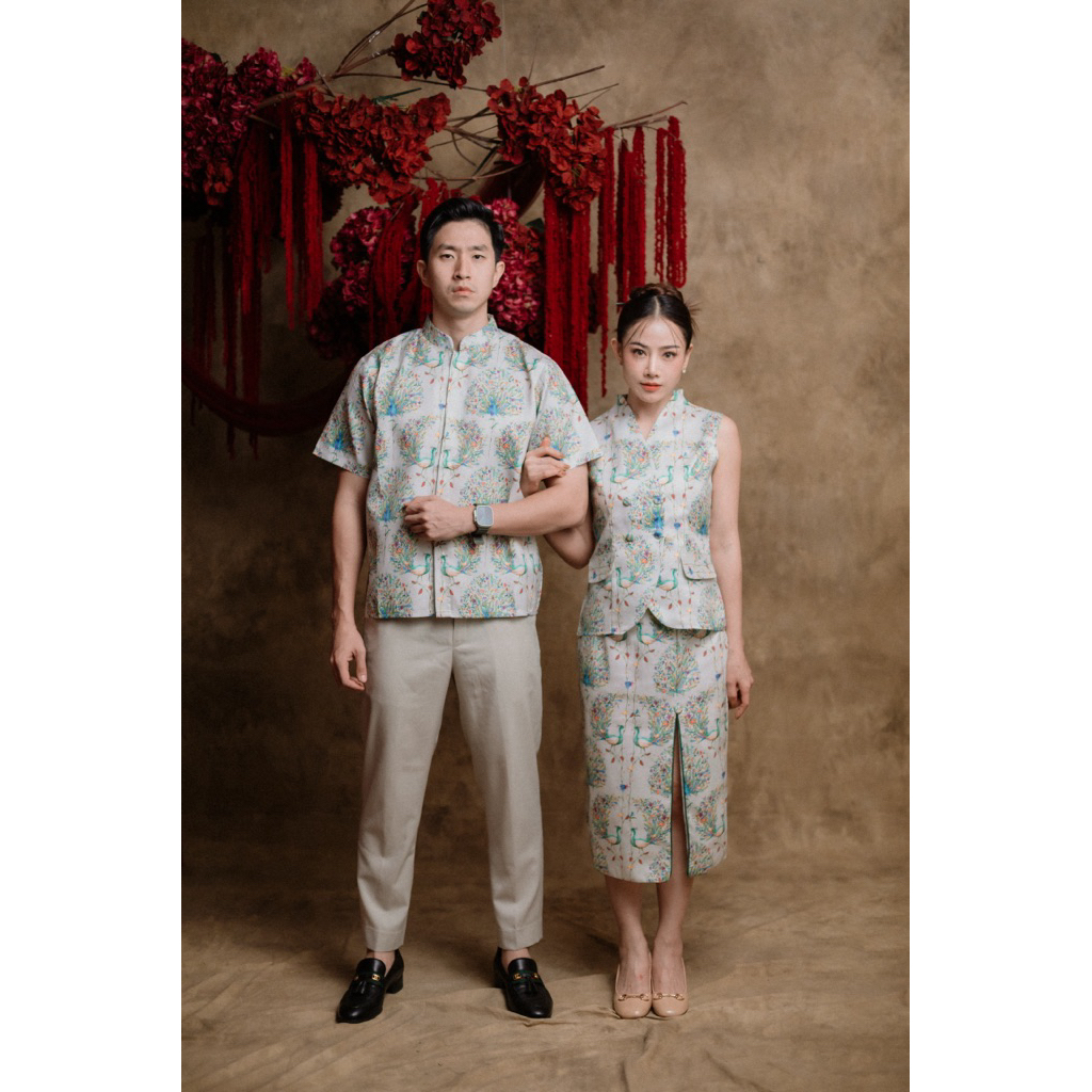 Cai Yu Couple - Cheongsam Modern 2026 Baju Imlek Family Atasan Bawahan Set Couple Baju Imlek 2026