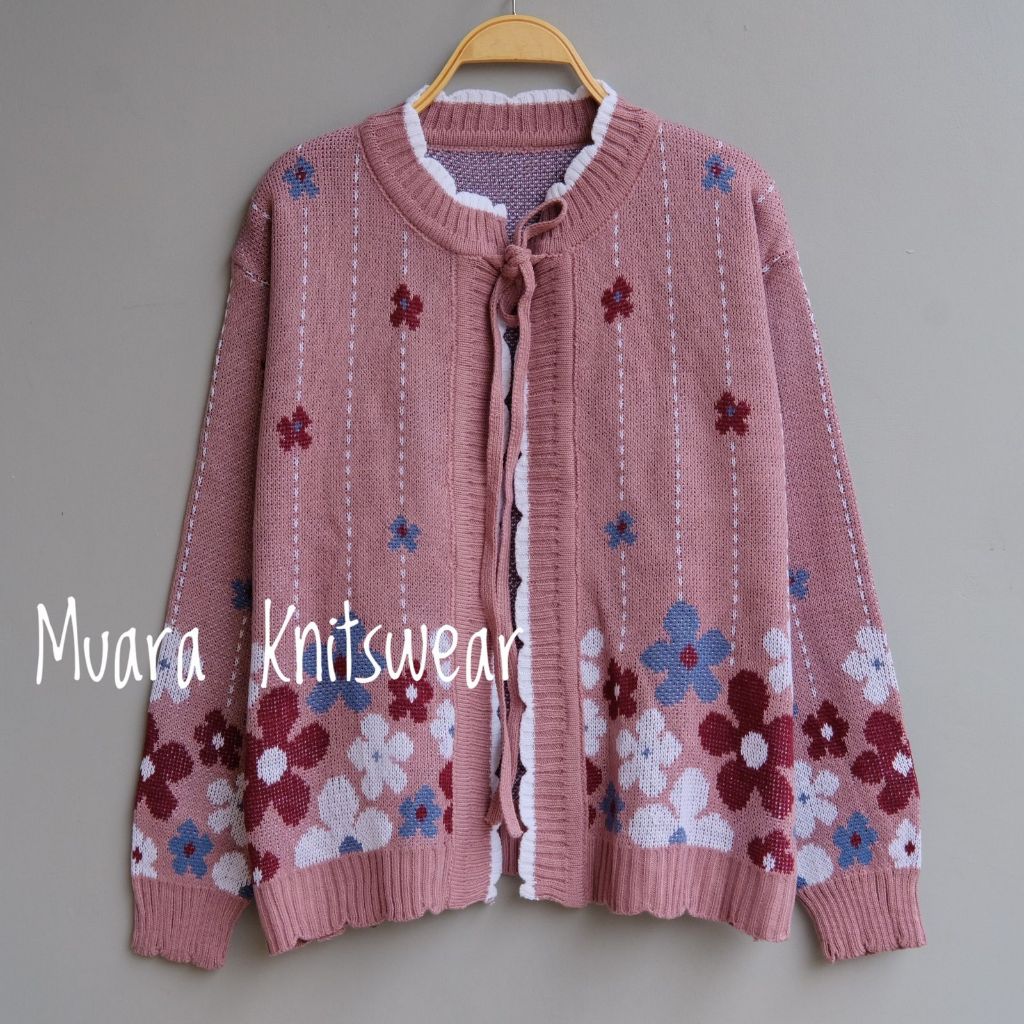 Muara Knitswear Cardigan Rajut Kancing Pita Motif Bunga Wanita Korea Stayle