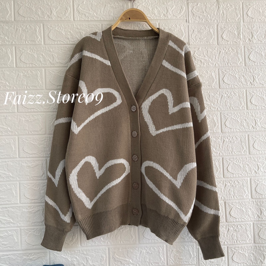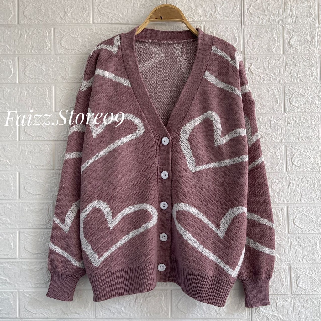 Angela Cardigan Rajut Kancing Polos Motif Love Atasa Lengan Panjang