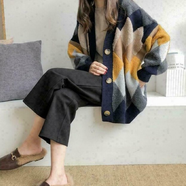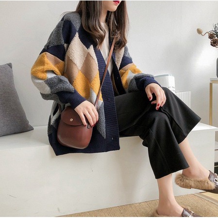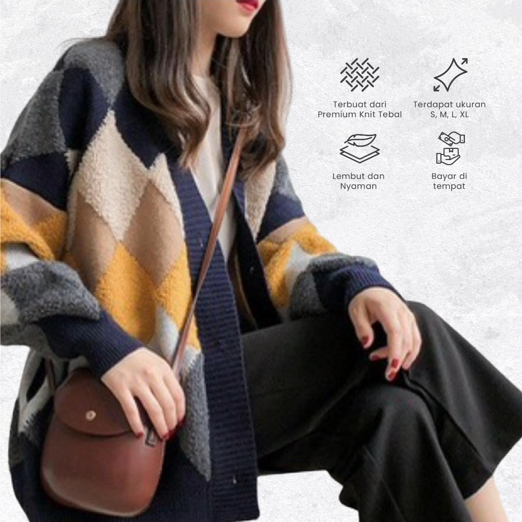 Dambi Cardigan Rajut Wanita Oversize Kardigan Premium Korean Style Motif Argyle -Najahstore_Official