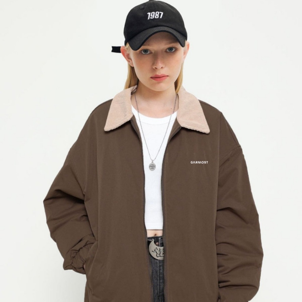 Tracktop Jacket Vintage Canvas Cotton Collar Corduroy Mantel Pria