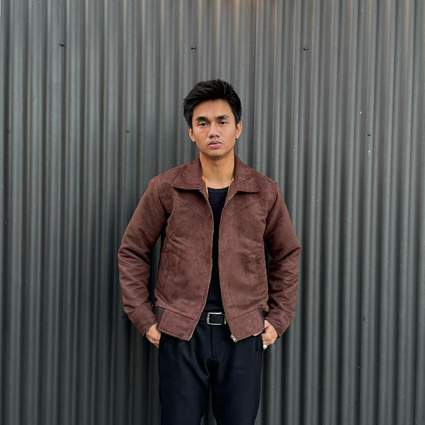 Jaket Boxy Pria Suede Vintage Work Jacket Boxy Fit
