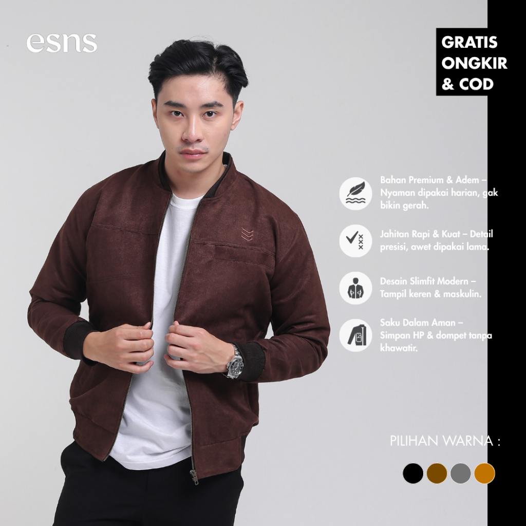 Esns Bomber Jaket Suede Premium Pria Original Vintage Keren Jacket Tebal Original Terbaru Cowok