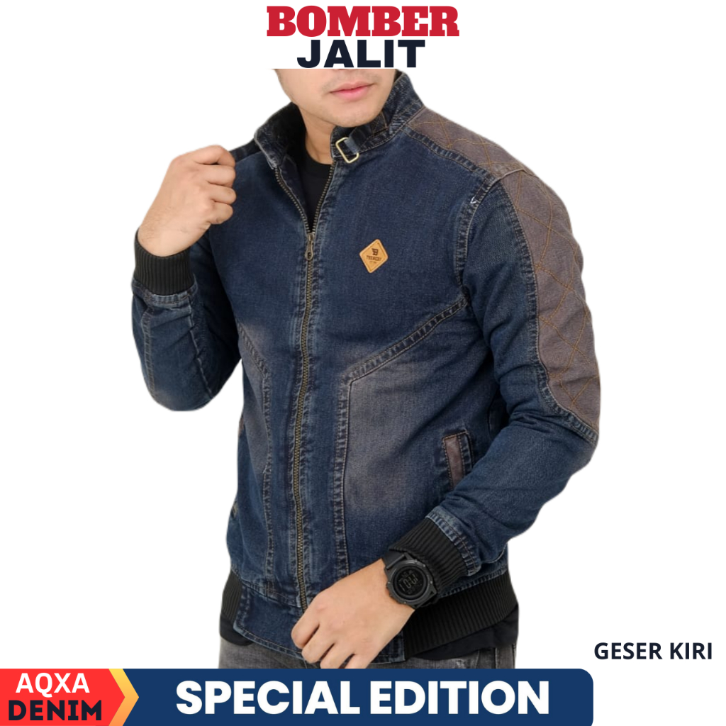 Aqxa Jaket Jeans Denim Pria Bomber Jalit