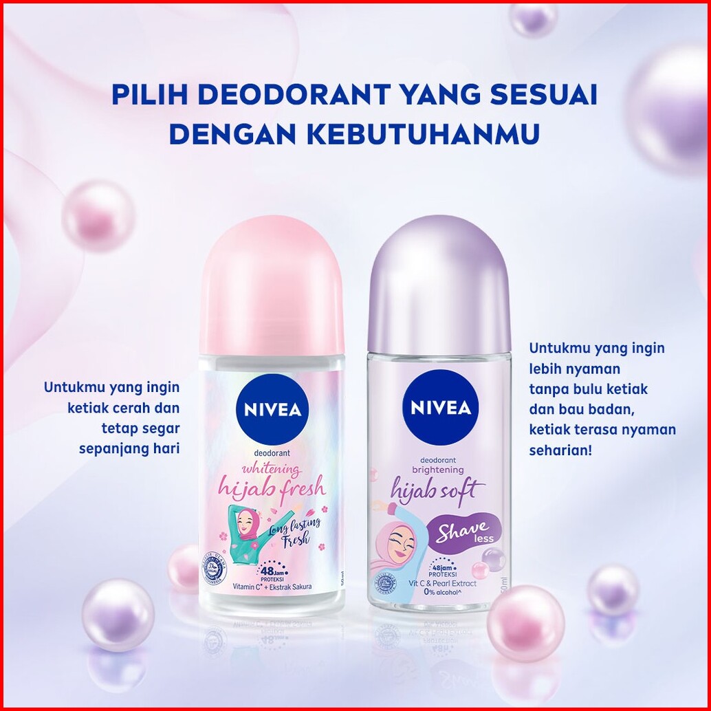Nivea Deodorant Roll On Brightening Hijab Soft 50ml - Deodorant Wanita Hijab Mencerahkan Melembutkan Kullit Dan Menguran
