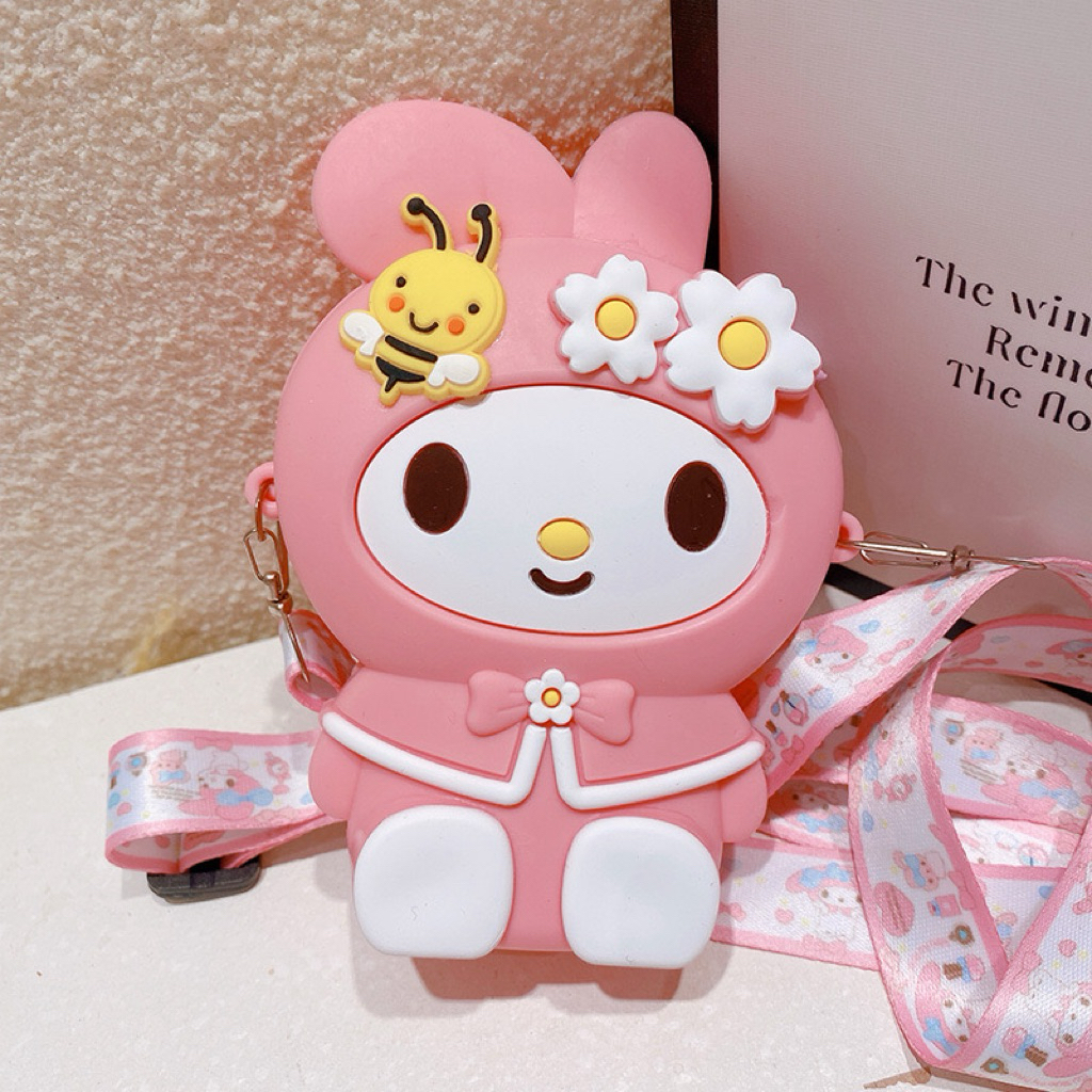 TAS JELLY Selempang Rubber Resleting Silicon 3D Anak Karakter Sanrio Kuromi Labubu Marvel Dompet Koin Mini Tas Serbaguna import
