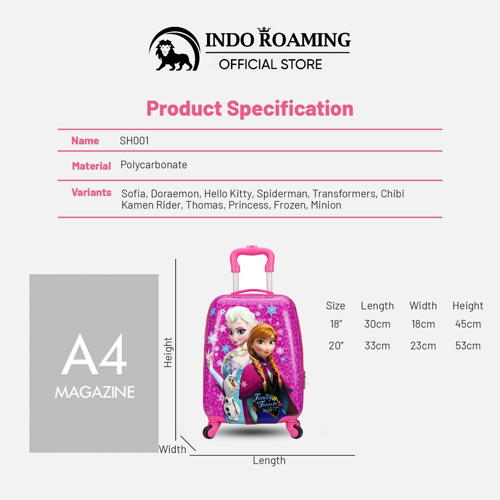 Indo Roaming Tas Koper Anak 3D Karakter Kabin Anti Baret & Pecah - SH001