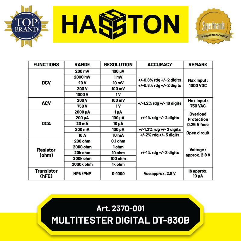 Hasston Multi Tester Digital DT830B Digital Multitester (2370-001)