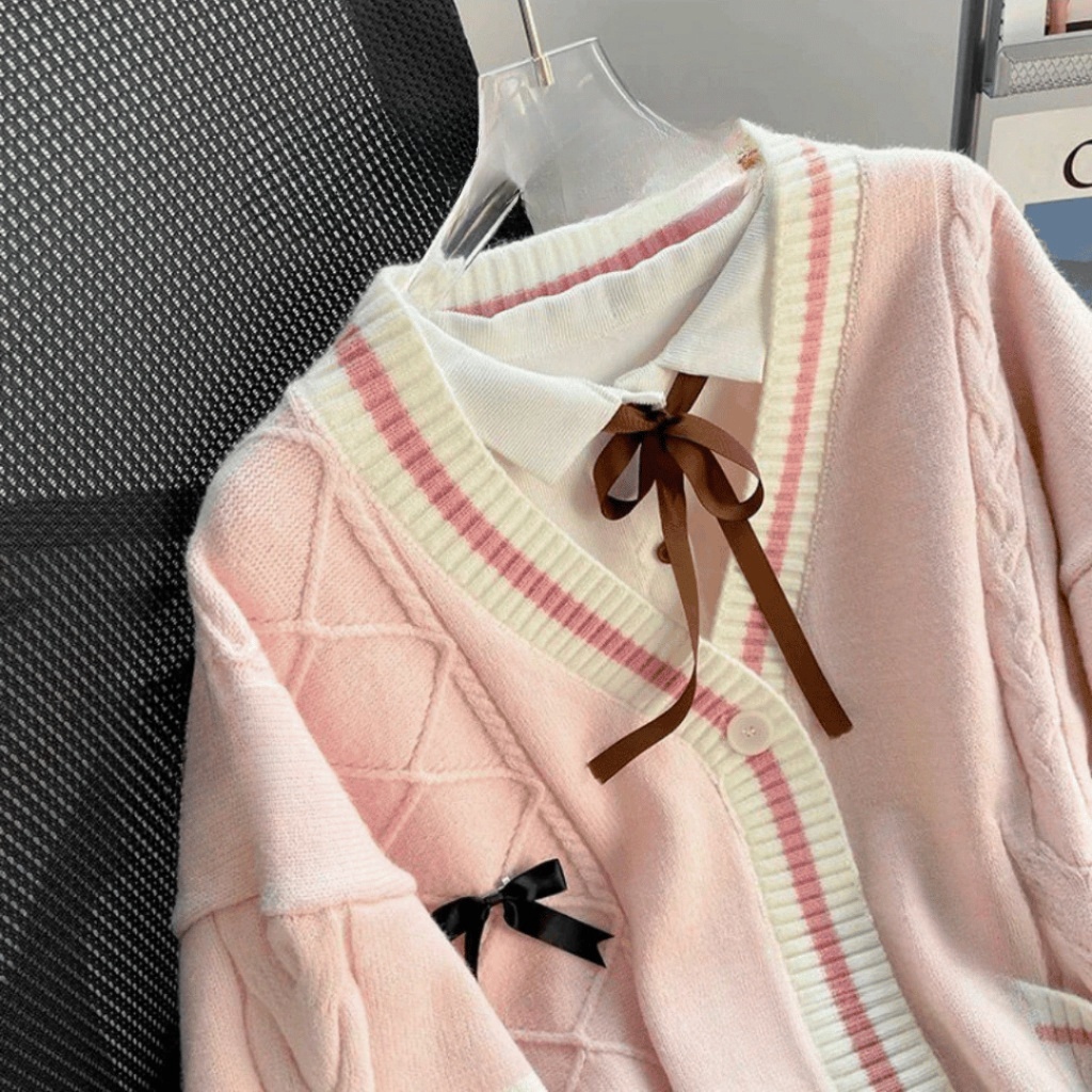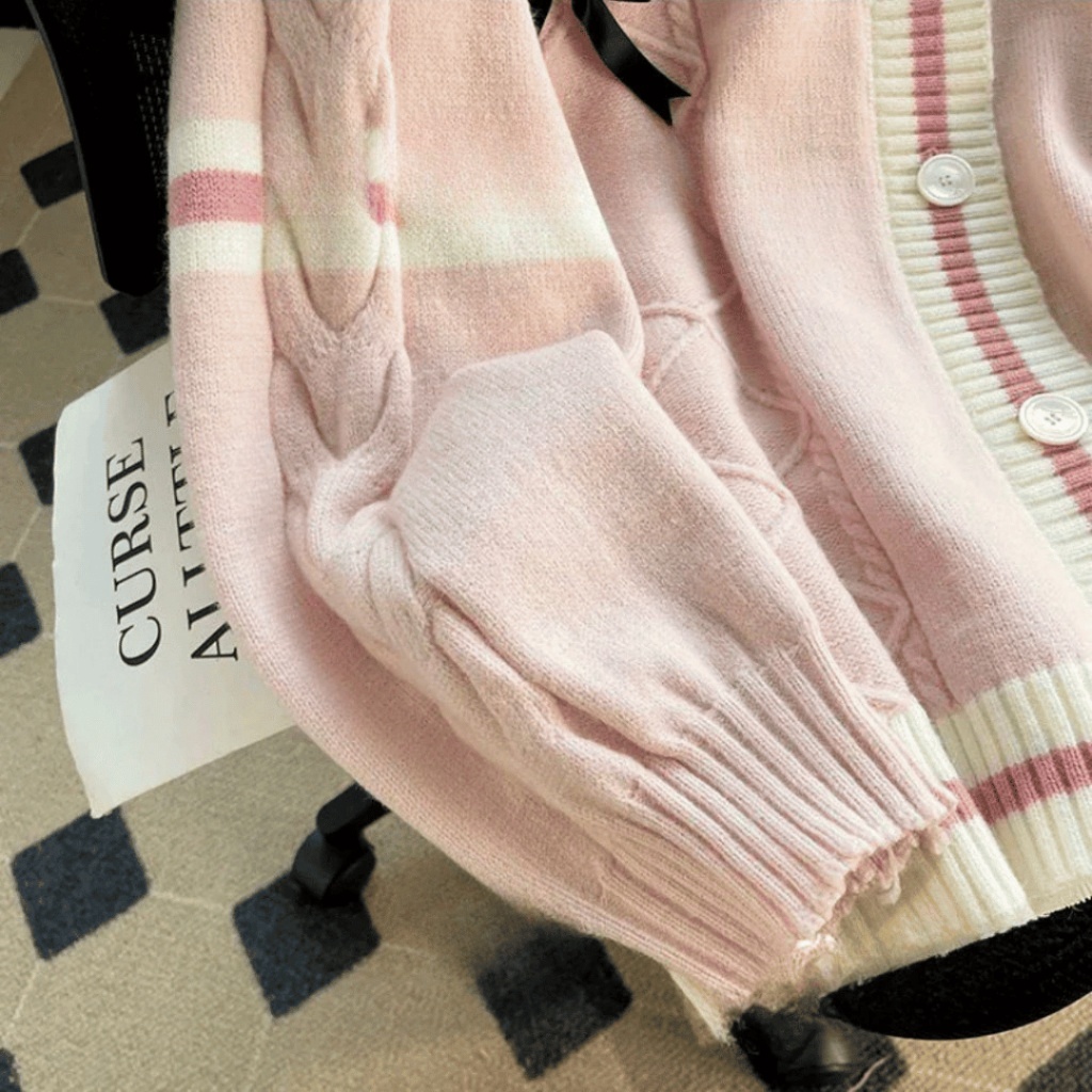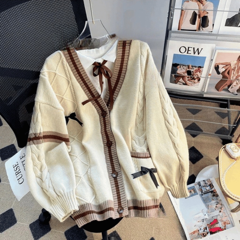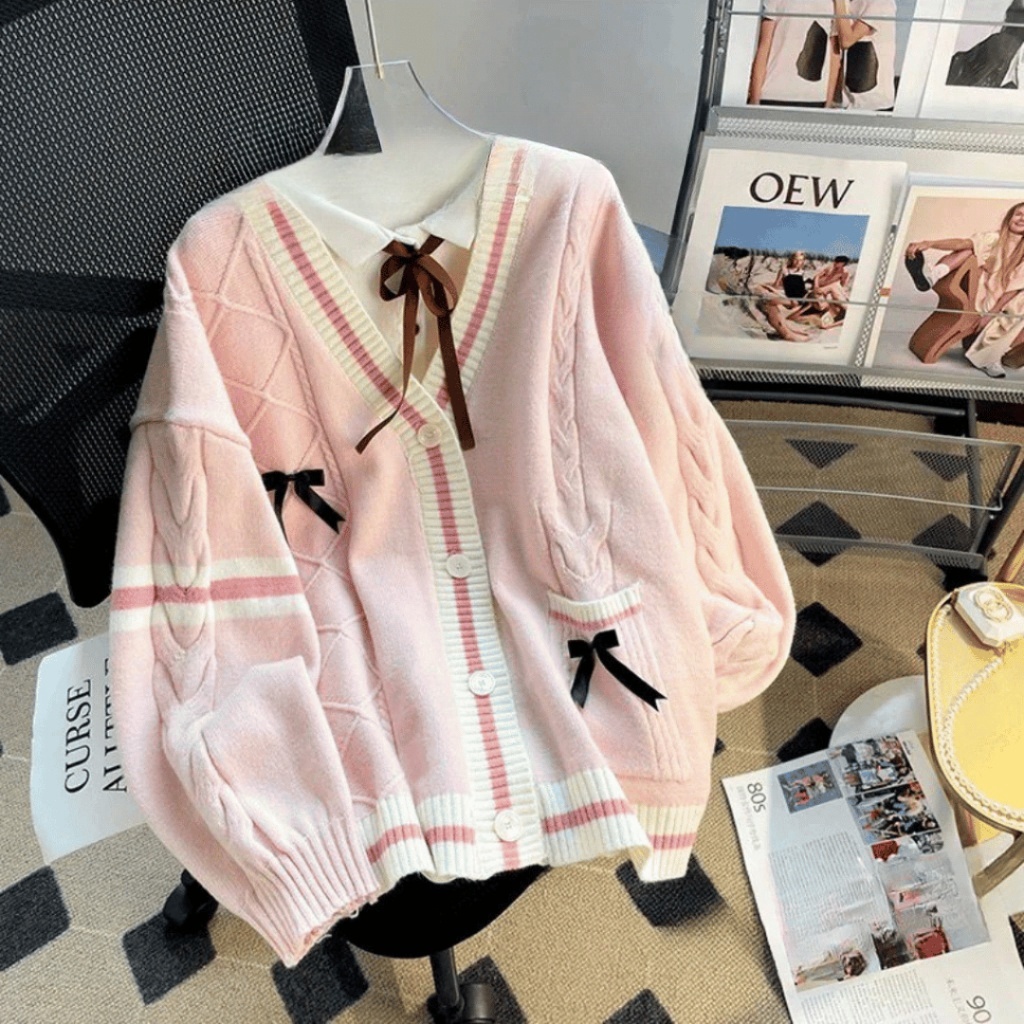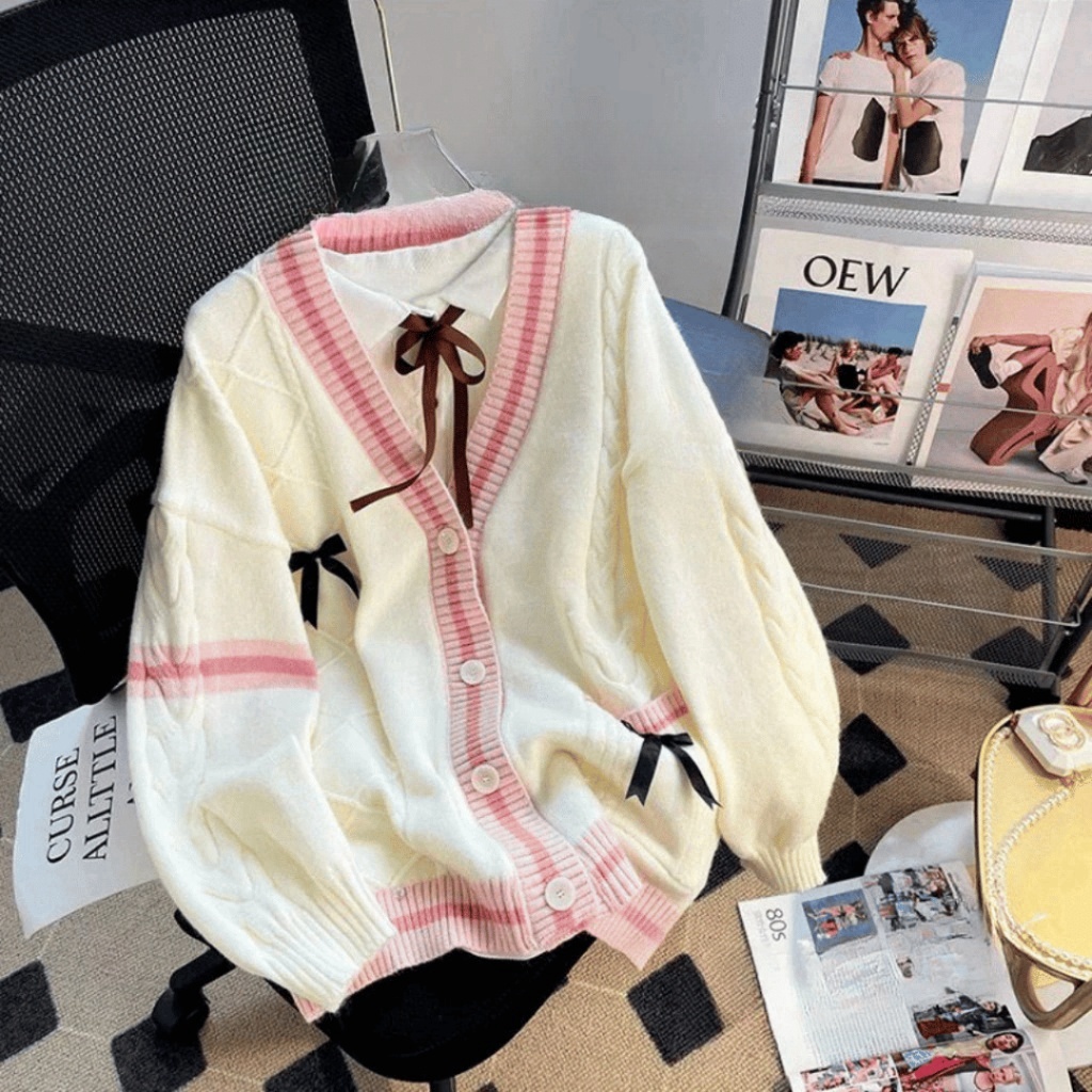 Monica Coquette Top Cardigan Rajut Korea Style Wanita Cardigan Coquette Long Sleeve Baju Oversize