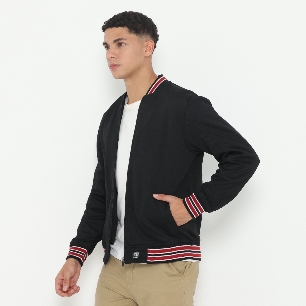 D&F Jaket Bomber Cvc Pria - Hitam Strip Maroon