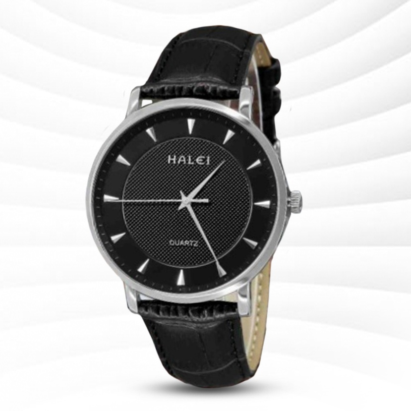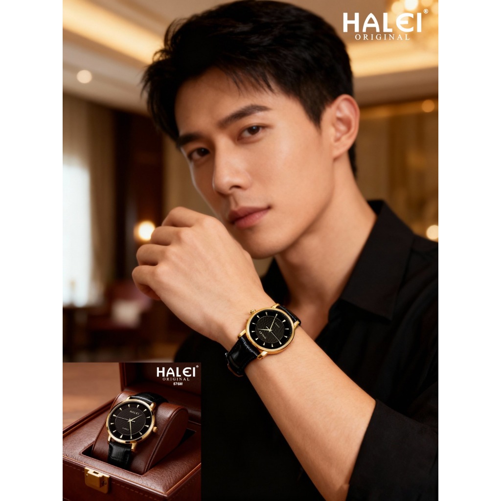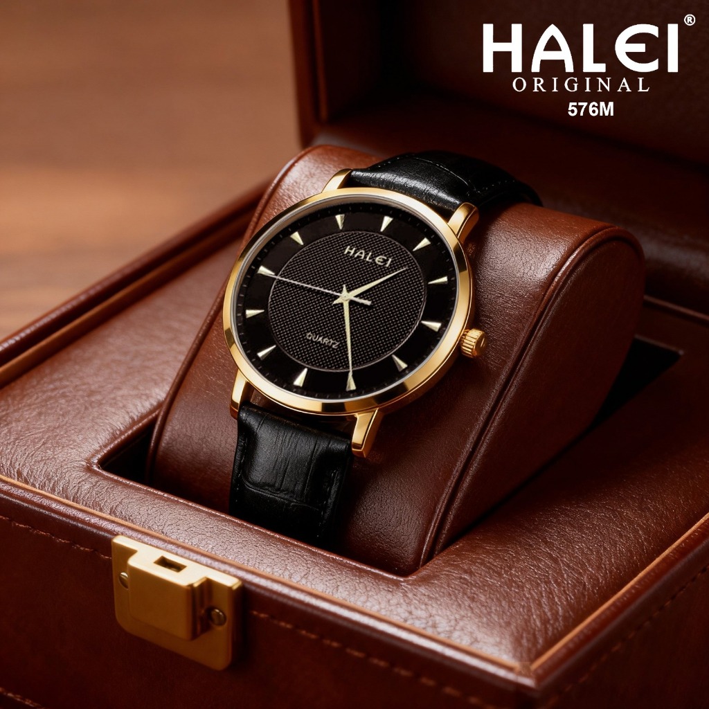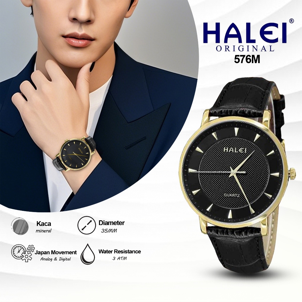 HALEI IND 576 M - Bergaransi Jam Tangan Pria Original Analog Tali Kulit Croco Anti Air Japan Mov