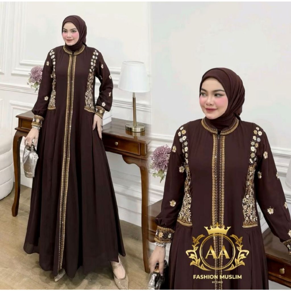 Gamis Hikmat Fashion Muslim Modern Pakaian Wanita Kekinian Baju Wanita Terbaru 2026 Bordir Plus Hija