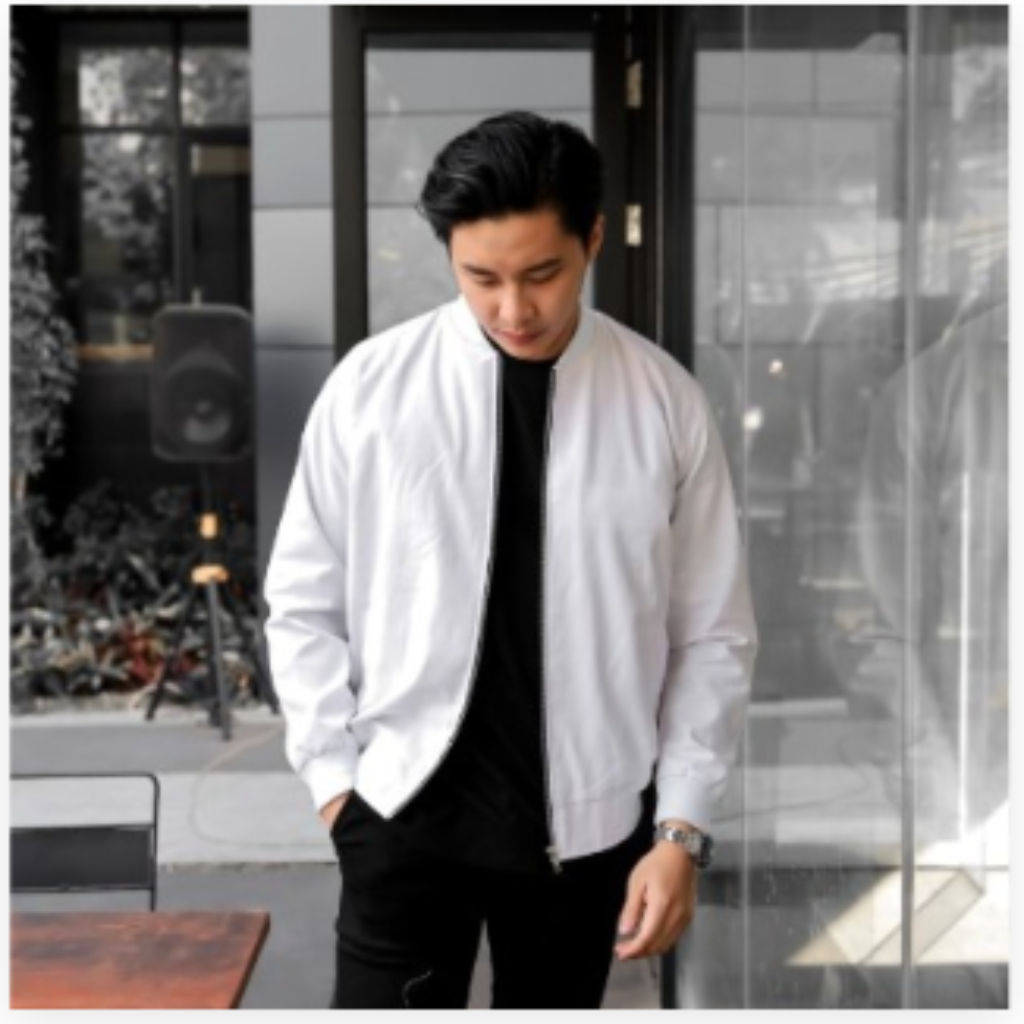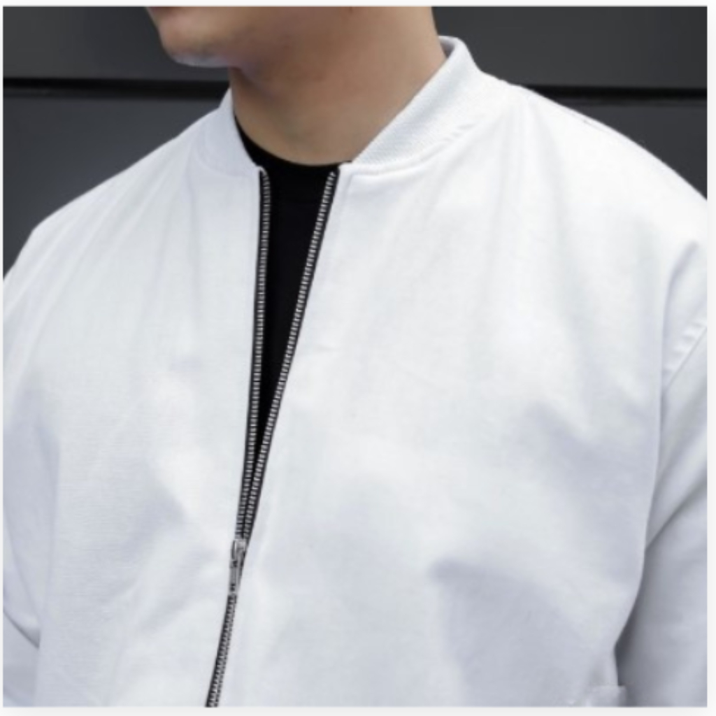 Jaket Bomber Katun Kanvas Pria Cowok Dewasa Polos Putih