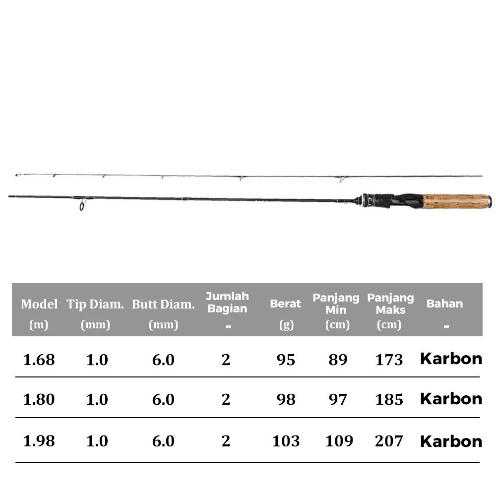 Joran Pancing Carbon Fiber 2 Bagian 1.8M - Untuk Teknik Spinning & Casting - Ringan dan Kuat, Portable untuk Travel Mancing - Ideal untuk Air Tawar dan Laut