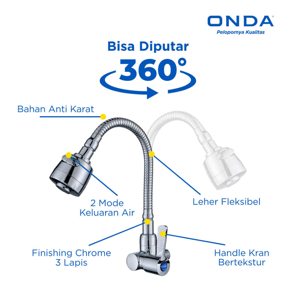 ONDA Kran Dapur Cuci Piring V-TUL FLEXI Tembok 1/2 In Keran Dapur Leher Angsa Fleksibel