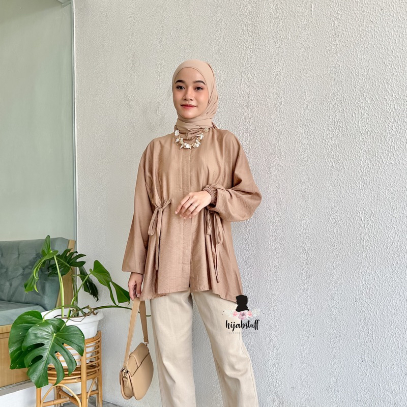 Hijabstuff Alya Atasan Kemeja polo Linen premium serut polos jumbo