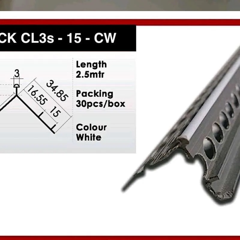 Eceran, corner bead, water dip line, PVC SCK CL3S - 15 CW, 2.5M, minimal order 10pcs