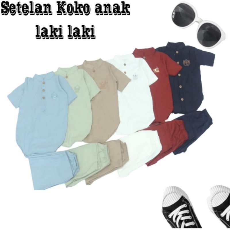 Setelan Kurta Anak Baju Koko Laki-Laki Katun Adem