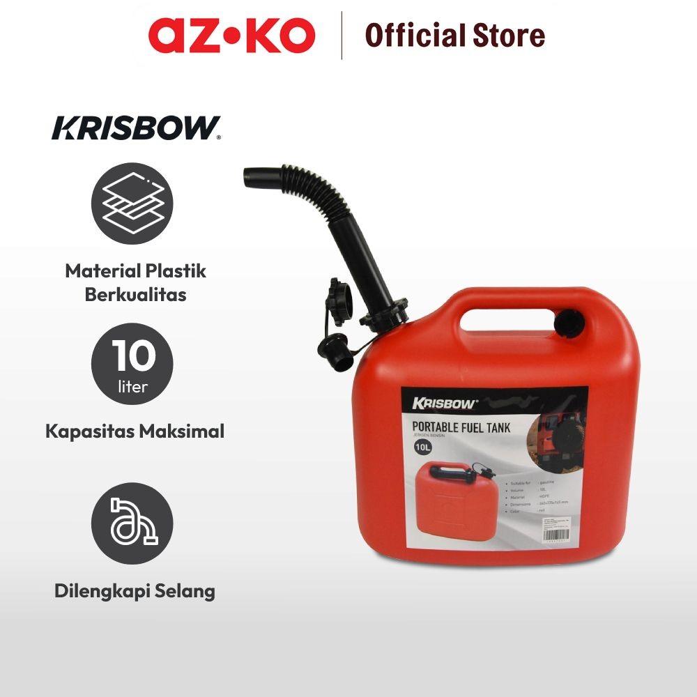 AZKO Krisbow 10 ltr Jerigen Bensin Plastik - Merah Tempat Bensin Bbm Jerrycan Jeriken Minyak Perlengkapan Bengkel