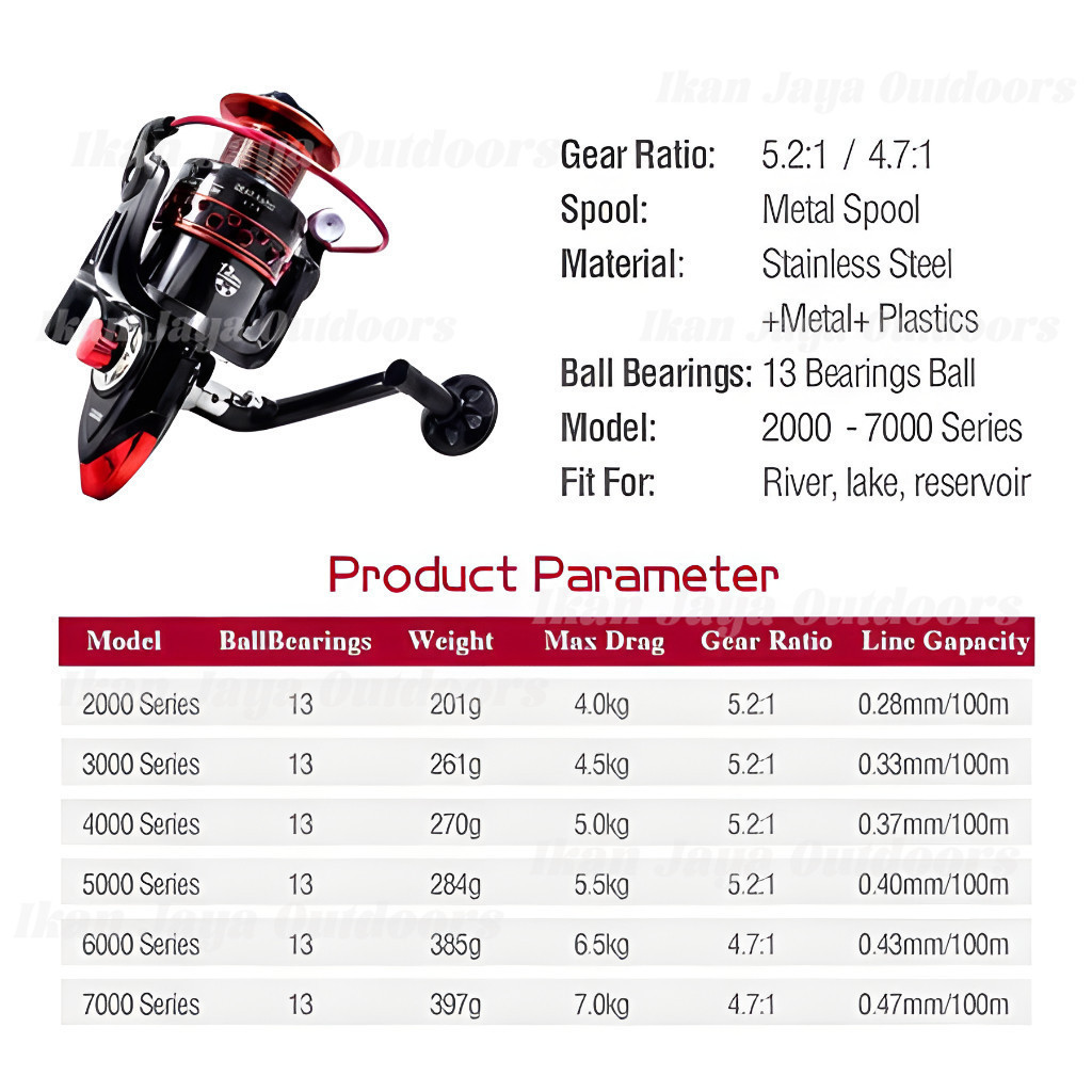 Reel Pancing Metal LK2000 - 7000 40 Kg Reel Pancing Tarikan Full Besi Murah Kuat Reel