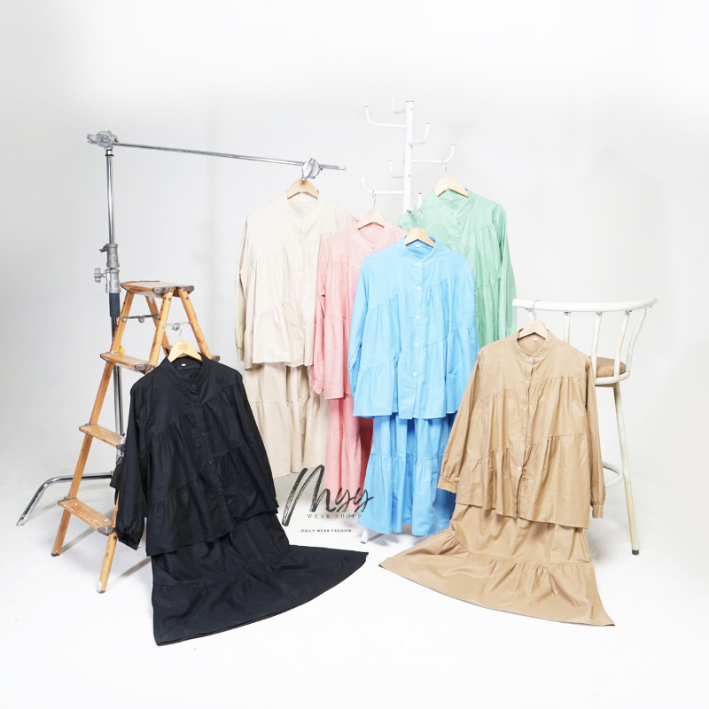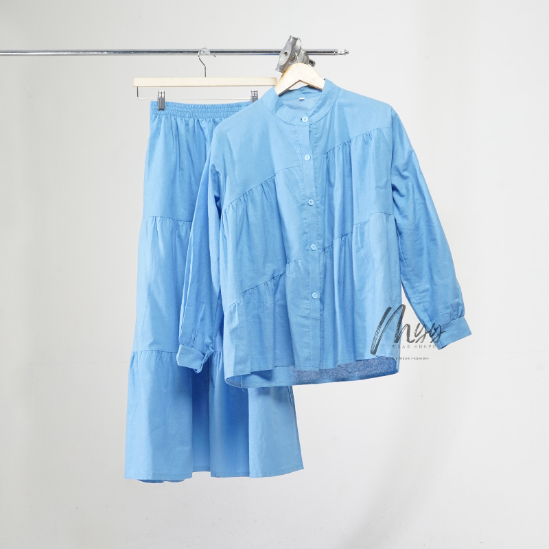 Catrine Set2in1 - Oneset Terbaru Atasan + Rok Bahan Linen Rami Setelan Wanita Kekinian