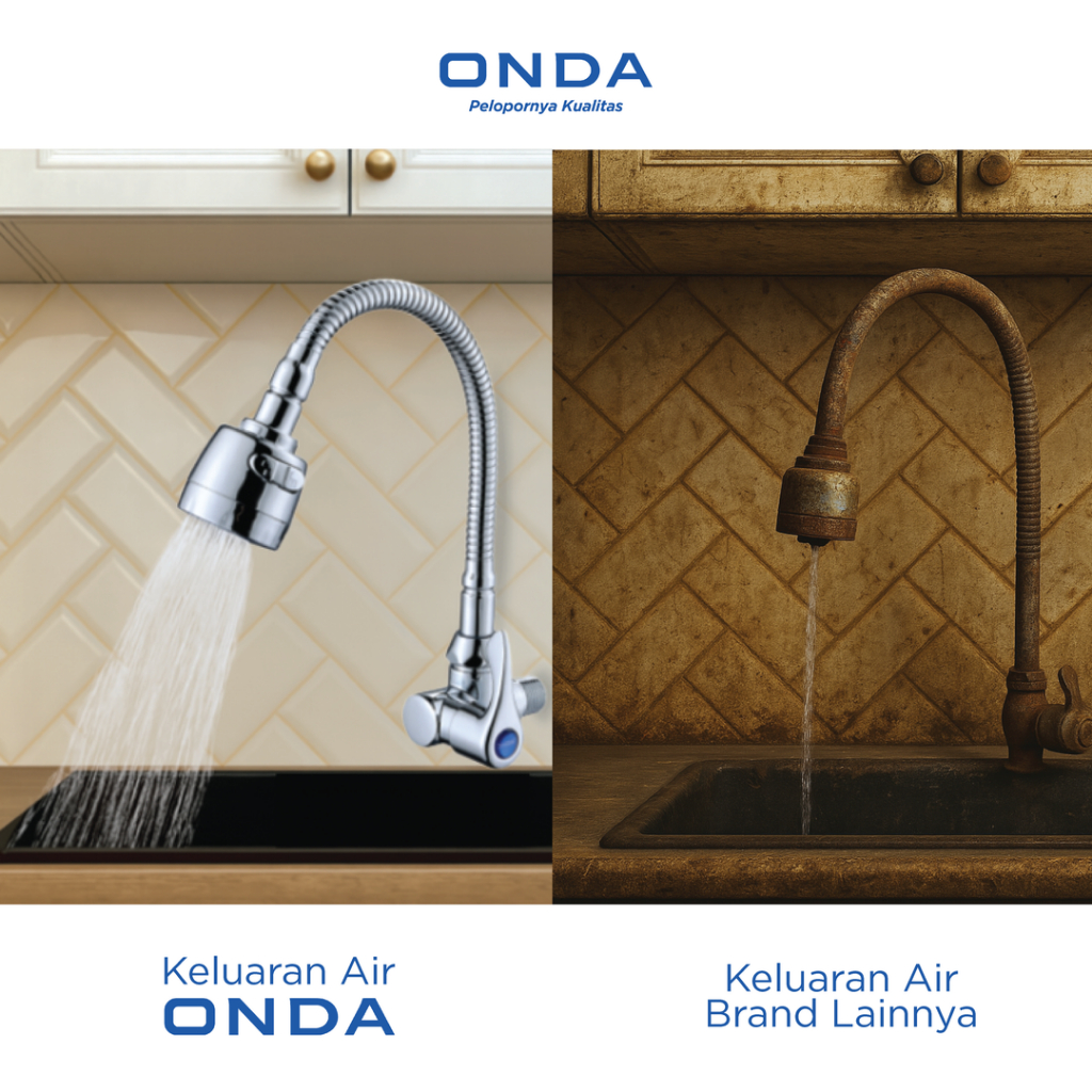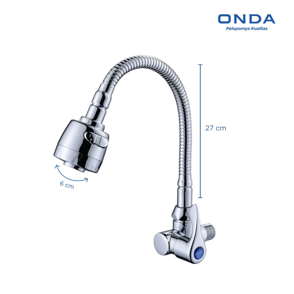 ONDA Kran Dapur Cuci Piring V 21 EG Tembok 1/2 In Kran Air Cuci Piring Stainless Anti Bocor Kran Pencuci Piring Leher Angsa Selang Fleksibel Keran Kamar Mandi