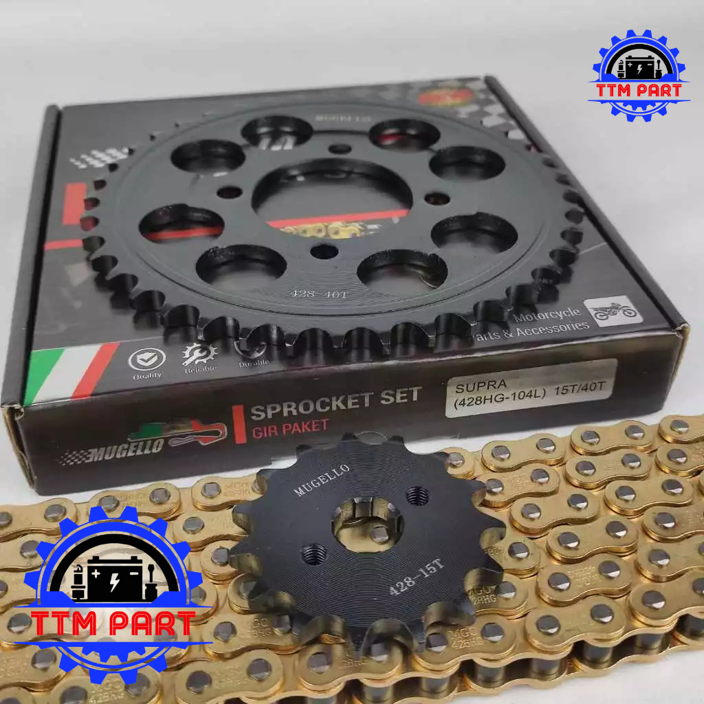 GEAR PAKET BAJA HONDA SUPRA PNP GRAND LEGENDA ASTREA PRIMA SUPRA X 100 LAMA FIT OLD 15/40T 428HG - 104L GIR SET MUGELLO