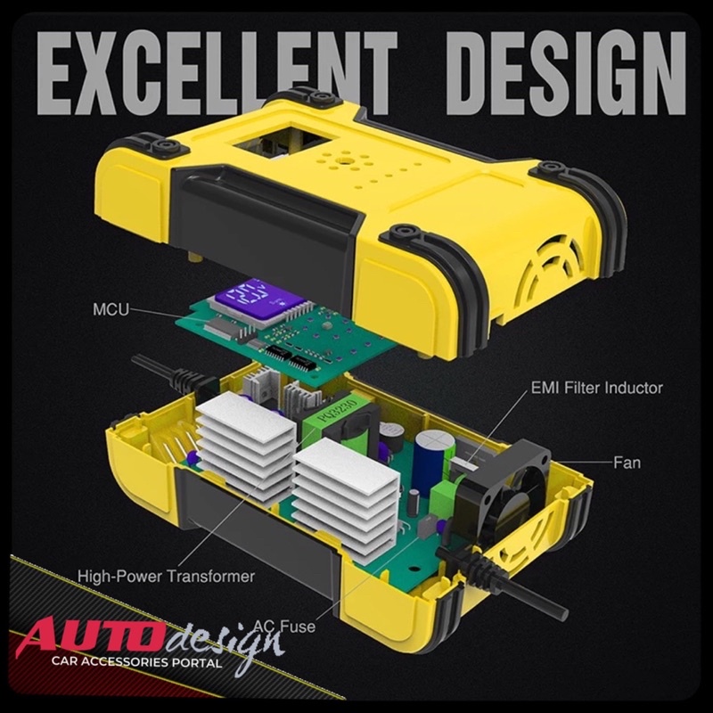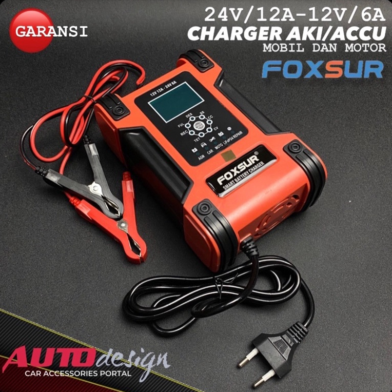 FOXSUR Charger Aki Mobil Motor Truk 12V 12A - 24V 6A Smart Charger 7 Stage Pengisian Original