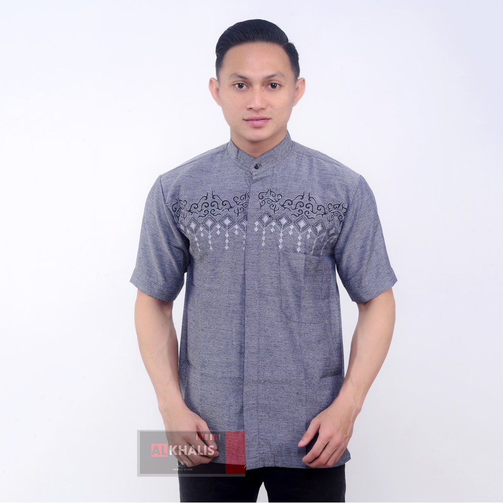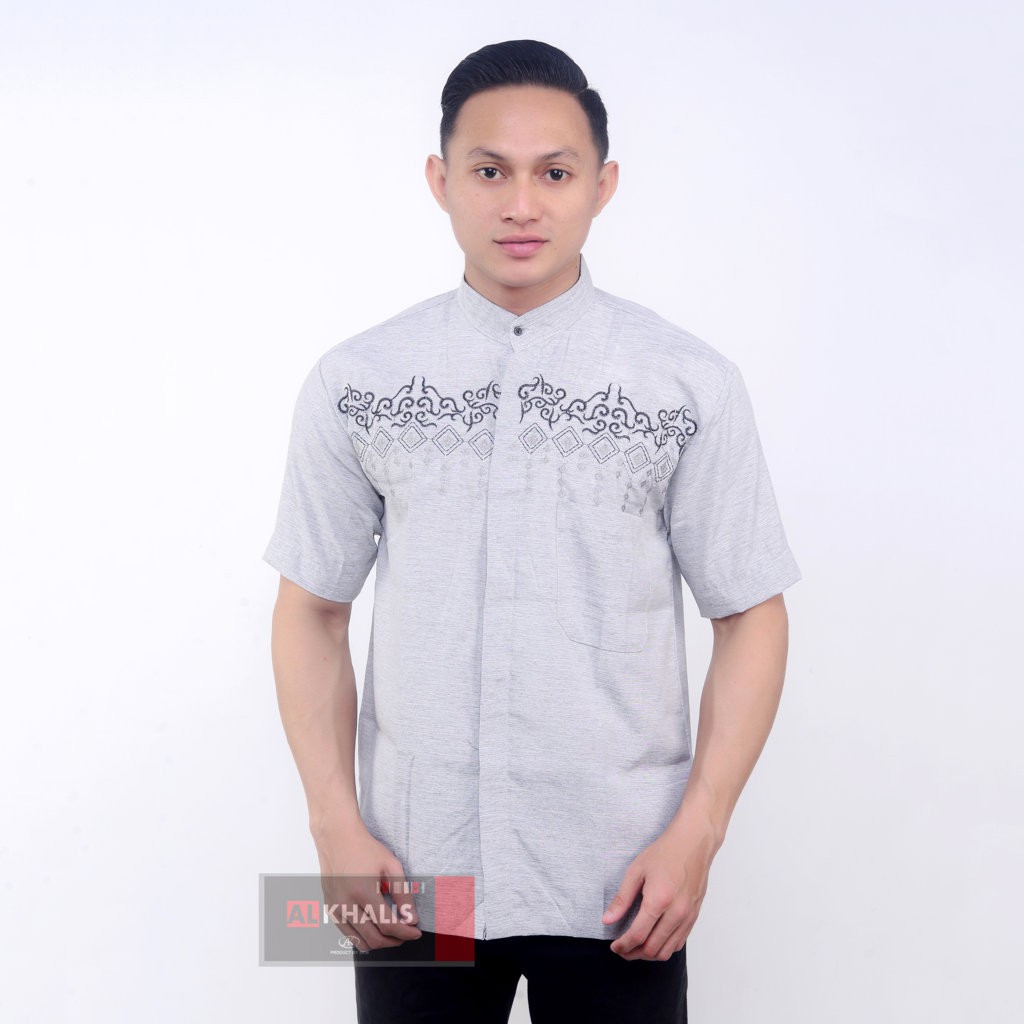 BAJU KOKO BORDIR LENGAN PENDEK TERMURAH BUSANA MUSLIM PRIA ALKHALIS