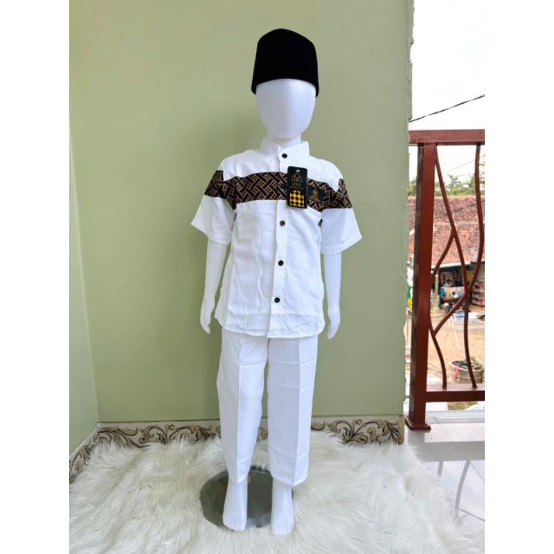 Baju Koko Anak Laki Laki Setelan Baju Muslim Anak Laki Laki Kombinasi Batik Kobata Qynang