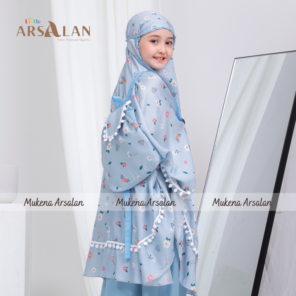 Mukena Anak Pompom Tas Ransel | Mukena Rayon kombinasi Mikro Anak SD Tanggung | Mukena Arsalan