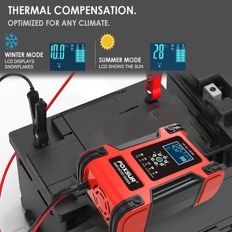 FOXSUR Charger Aki Mobil Motor Truk 12V 12A - 24V 6A Smart Charger 7 Stage Pengisian Original