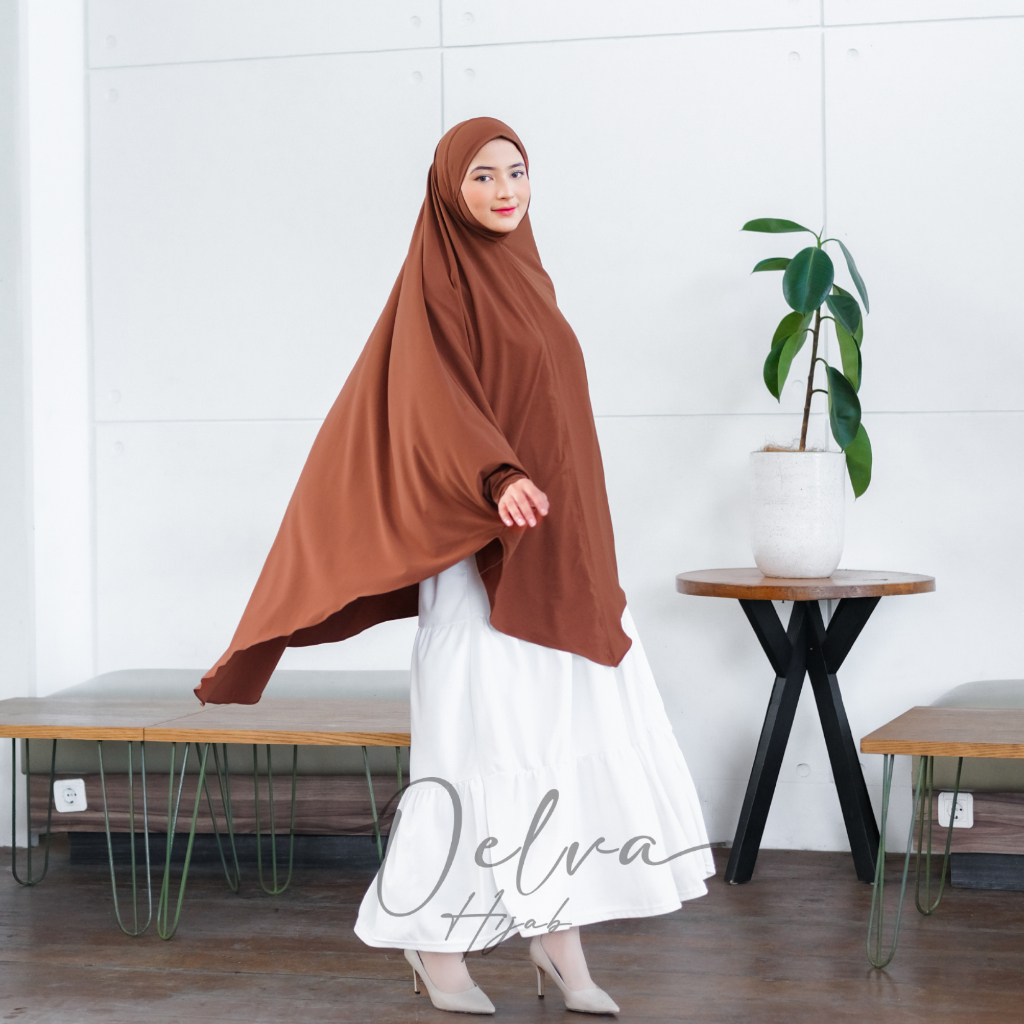 Oelva Hijab - Khimar Jumbo Melayu Lengan Jersey Premium - Model Menutup Dahi dan Dagu (Azwa Lengan)