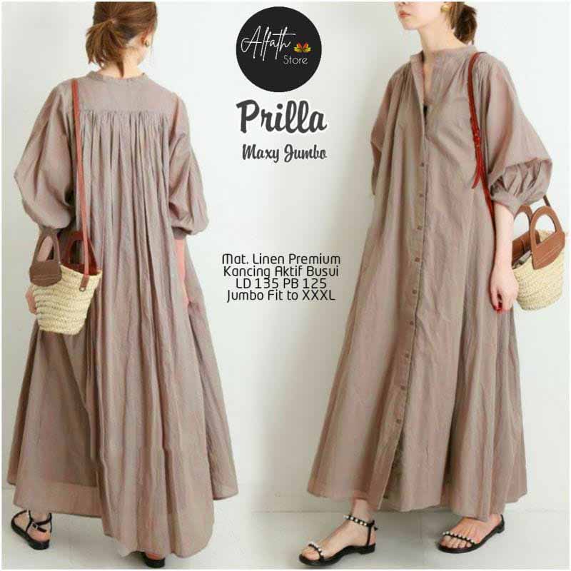GrosirBajuBandung17 ( TERBARU ) Gamis Prilia Maxy Dress Bahan Polo Linen Model Elegan Simple Baju Dress Lebaran Termurah