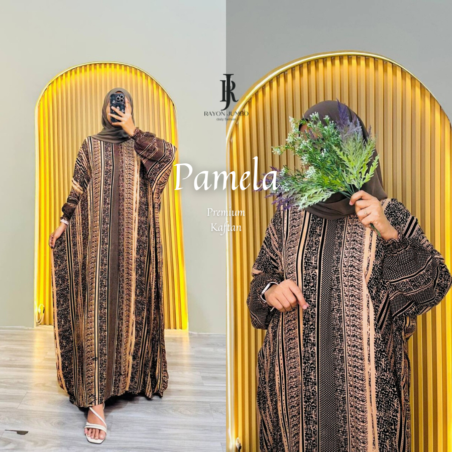 Home kaftan Motif Pamela Bahan Rayon Super Jumbo XXXL Baju Muslimah mewah Elegan Baju Pengajian
