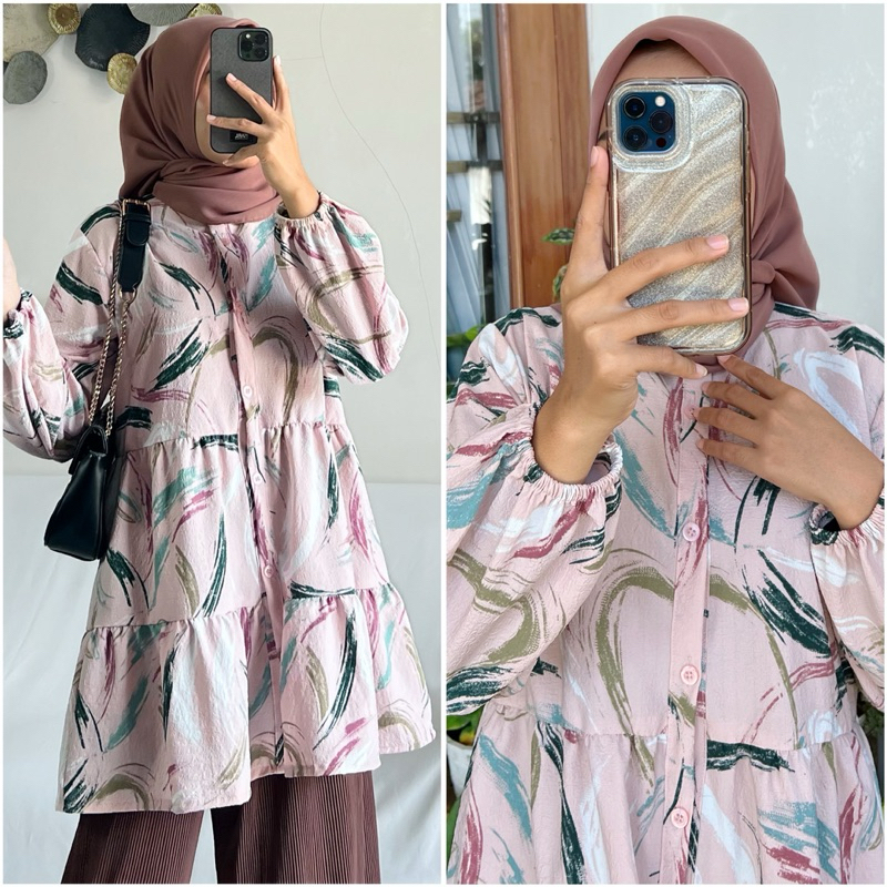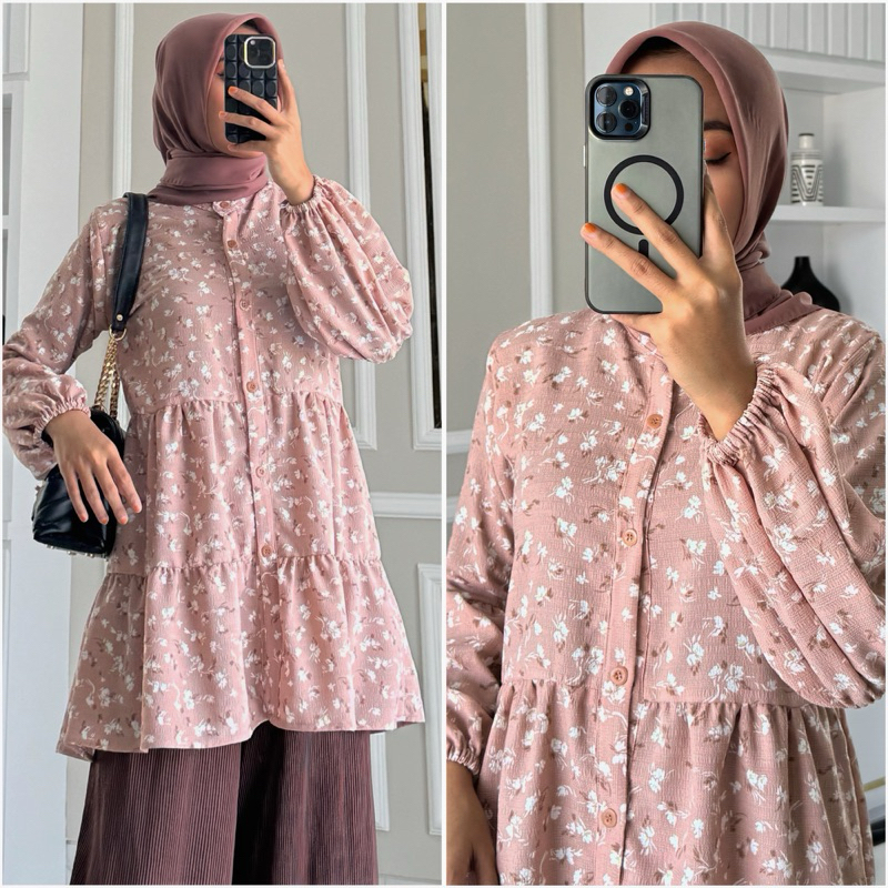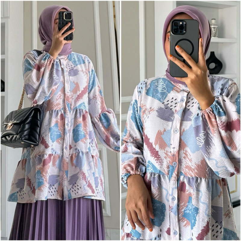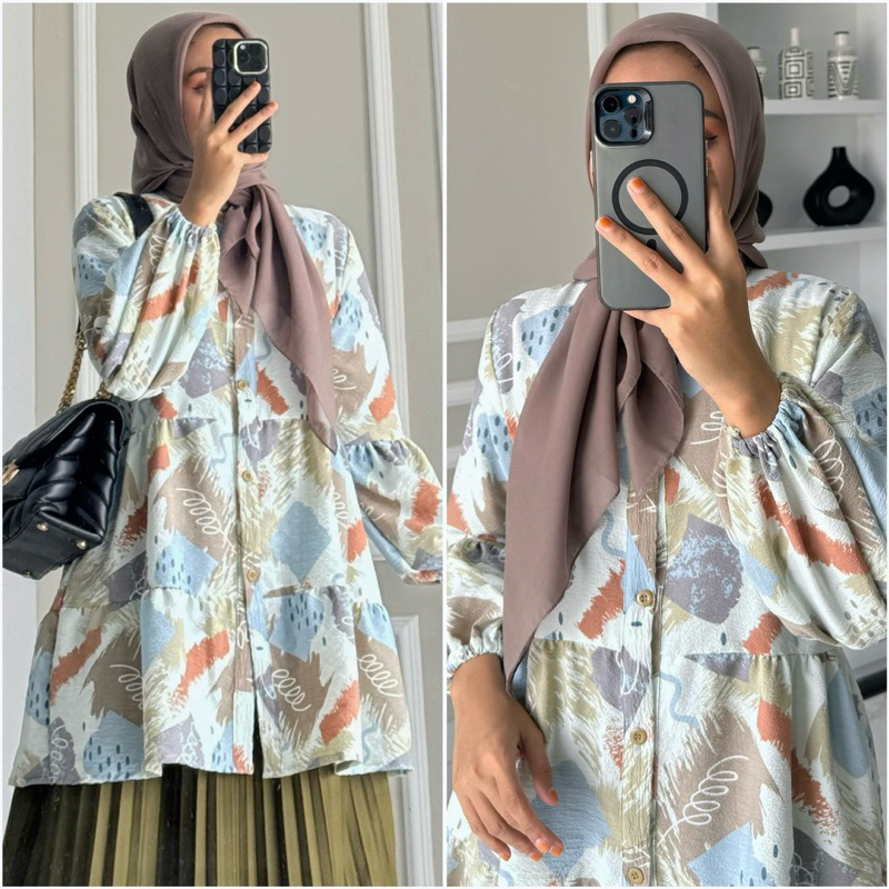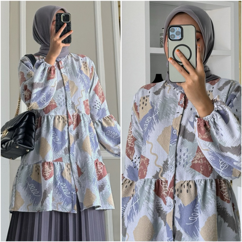 NAVA blouse by ZALFA OUTFIT /Baju Atasan Wanita muslim blouse kerja kuliah basic crincle motif premium lengan panjang karet