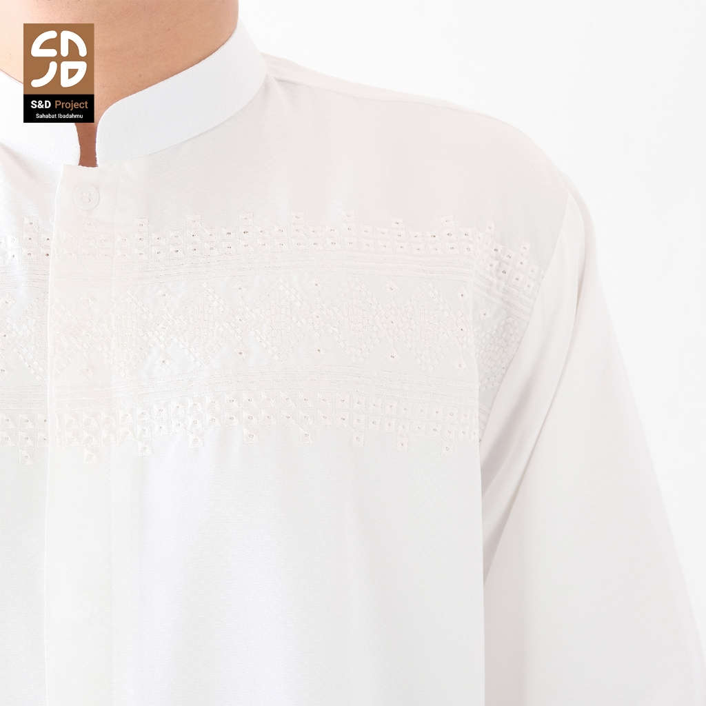 S&D PROJECT Koko Muslim Seri 02 Bordir Polikatun Putih Tulang Jumbo M-4XL Pria Dewasa Lengan Panjang