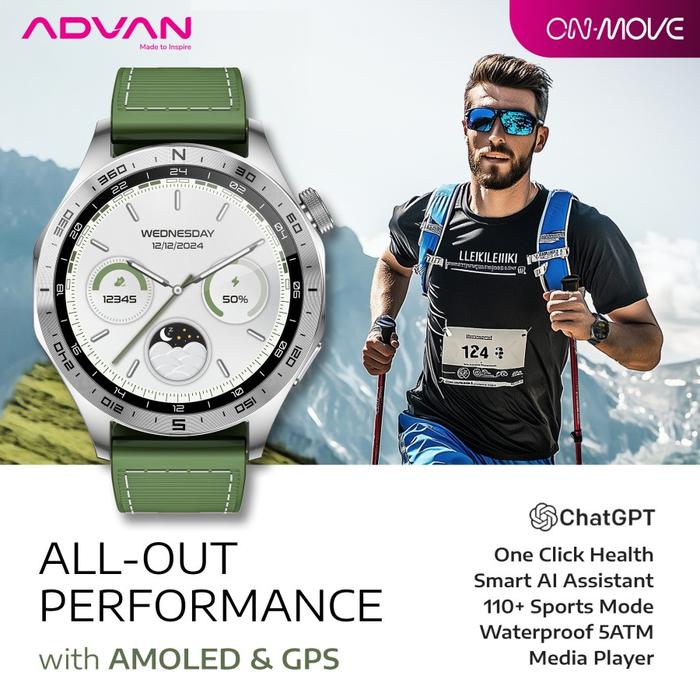 Advan Smartwatch On Move Gps Ai Chatgpt Assistant Amoled 1.43" Aod Bluetooth Call Waterproof Tahan Air 5Atm Jam Tangan P