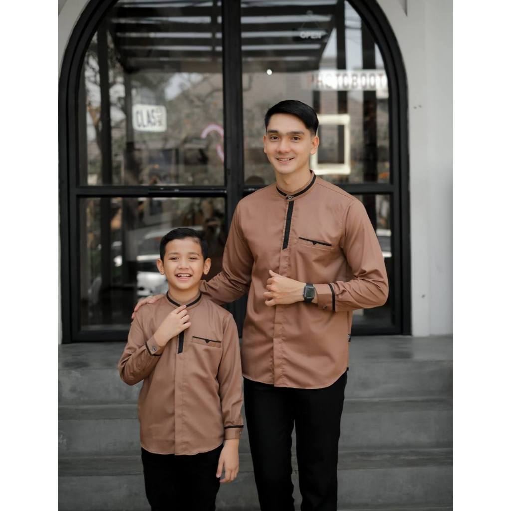 Baju Koko Couple Ayah Anak Laki Laki burgundy Lengan Panjang Bahan Toyobo Import Terbaru 2025