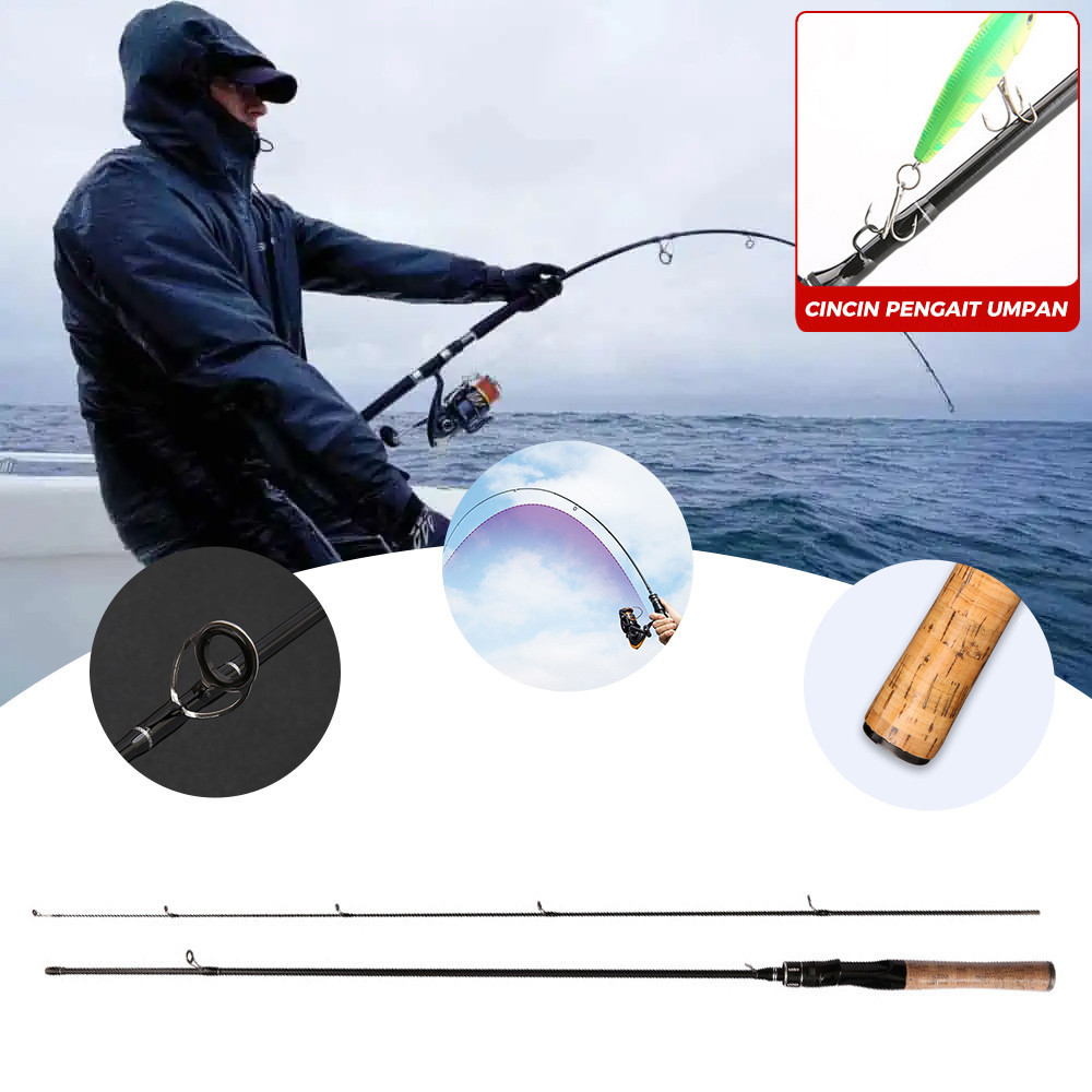 Joran Pancing Carbon Fiber 2 Bagian 1.8M - Untuk Teknik Spinning & Casting - Ringan dan Kuat, Portable untuk Travel Mancing - Ideal untuk Air Tawar dan Laut