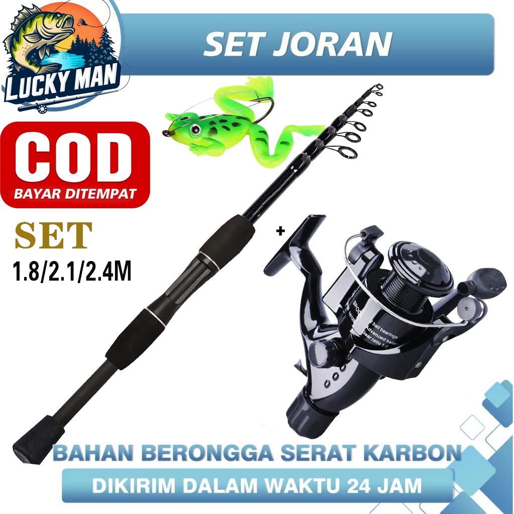 LUCKY MAN Set Tongkat dan Gulungan Pancing pancingan 1 set lengkap murah Pancing dan Memancing Set 1.8M 2.1M 2.4M Pemintalan Memancing Rod dengan 5.1:1 Rasio Gear Pemintalan Memancing Pening Combo Set