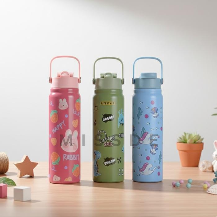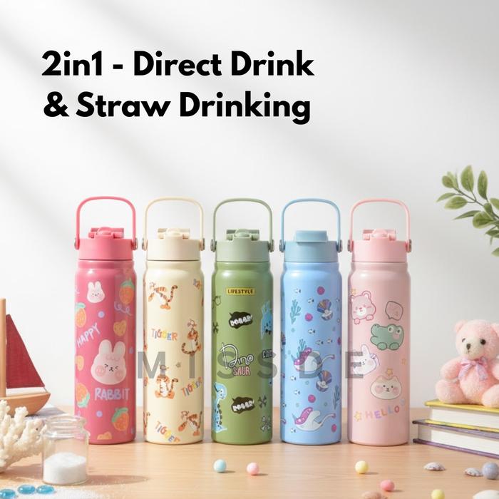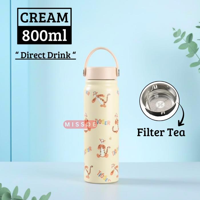 Tumbler Bottle 2in1 Stainless Steel 800ml / Flip Straw Water Bottle / Botol Minum Anak Clay - CLAY SIP CREAM