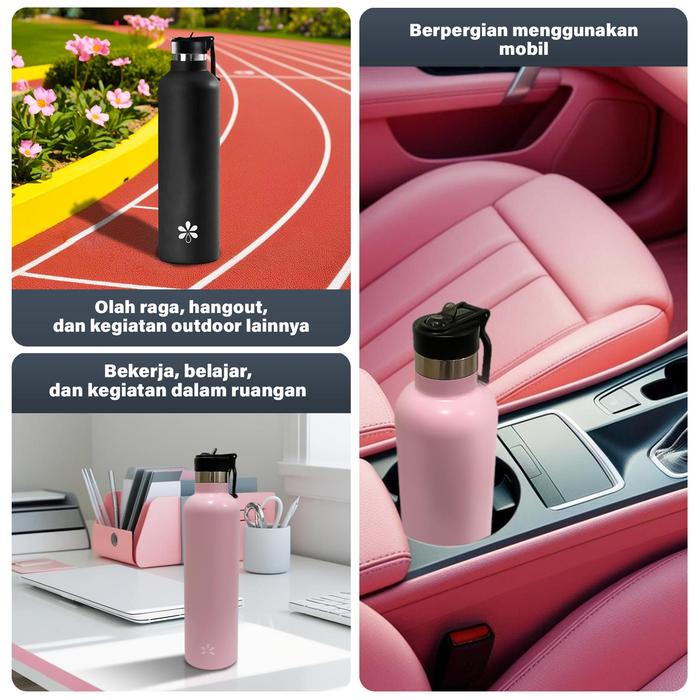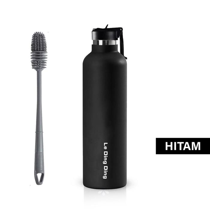 Tumbler Stainless Aesthetic Tumbler Tahan Panas Dingin 24 jam Botol Minum 1 Liter Thermos Bottle SUS 316 - Hitam-750ml
