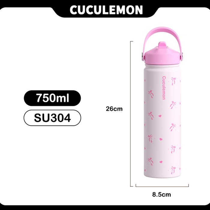 Cuculemon Tumblr Tahan Panas Dingin 12 jam Stainless Botol Minum 750ML Termos Olahraga Aesthetic - Pink-750ML